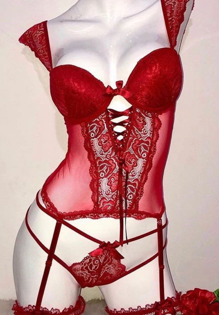 elaborado en encaje, tela algodón, maya tex, copa push up, incluye cambio de tiras, incluye panty liguero y ligas (puedes dejar o quitar), set tipo corset y babydoll